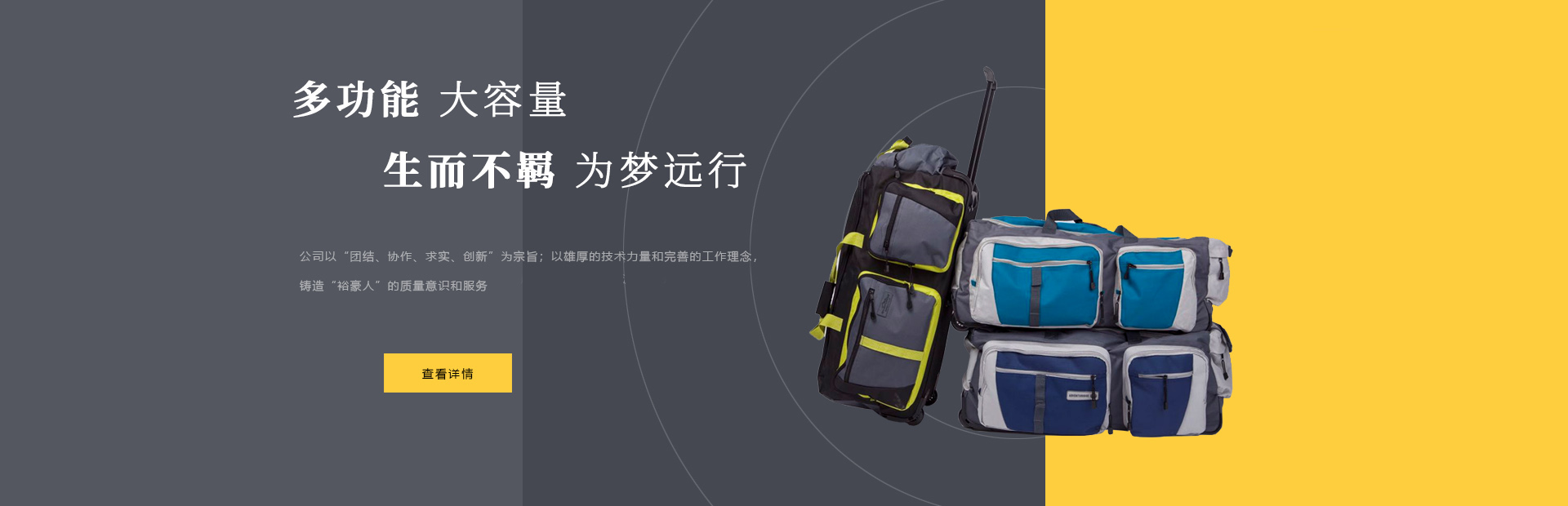 本公司是一家集設(shè)計(jì),制造,加工,貿(mào)易為一體的專(zhuān)業(yè)箱包生產(chǎn)出口企業(yè)。已有20多年箱包生產(chǎn)經(jīng)驗(yàn)。公司廠(chǎng)區(qū)位于中國(guó)浙江省海寧市鹽官工業(yè)園區(qū),占地15000平方米,建筑面積10000平方米,員工150人,年生產(chǎn)能力260萬(wàn)只(套)。 公司以尼龍,滌淪,牛津布,P...